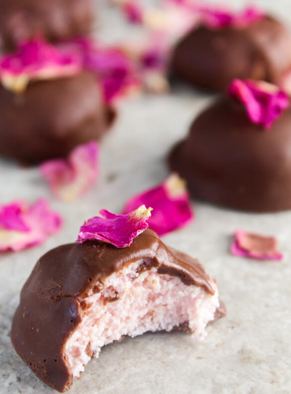 Ruby hot chocolate topped with whipped heavy cream, dusted with ruby chocolate flakes. Served with raspberry thumbprint cookies.Vodka optional.
