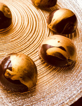 A creamy Milk Tea flavored centre, covered in smooth velvety milk chocolate & dusted with matcha.