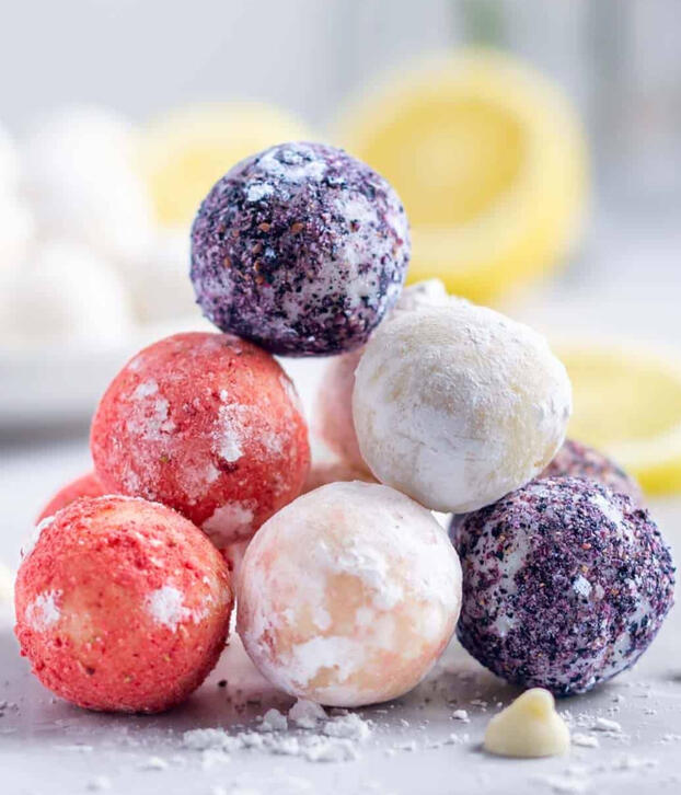 Ube white hot chocolate topped with whipped heavy cream, dusted with song flower tips and edible amethyst glitter. Served with a chewy ube crinkle cookie.White chocolate liqueur optional.