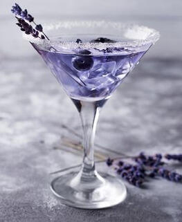 Gin, cointreau, vermouth, absinthe, triple sec, crème de violette & lemon juice served over ice in a chilled glass. Garnished with blueberries & a sprig of lavender.