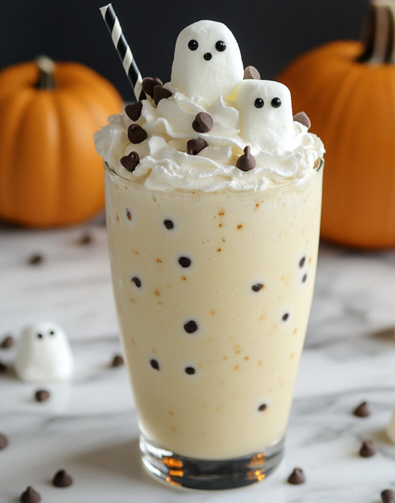 Vanilla icecream, your choice of milk & a dash of vanilla extract, blended together & topped with a generous helping of whipped cream & chocolate chips.
